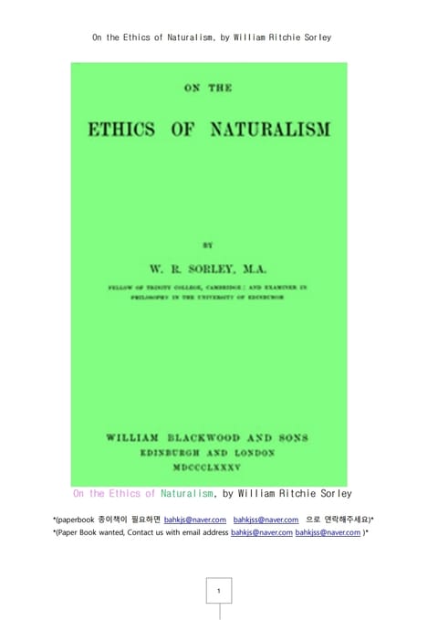 자연주의의 윤리론 (On the Ethics of Naturalism, by William Ritchie Sorley)