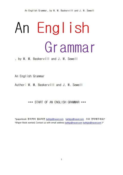 영어 문법 (An English Grammar, by W. M. Baskervill and J. W. Sewell) 상세페이지