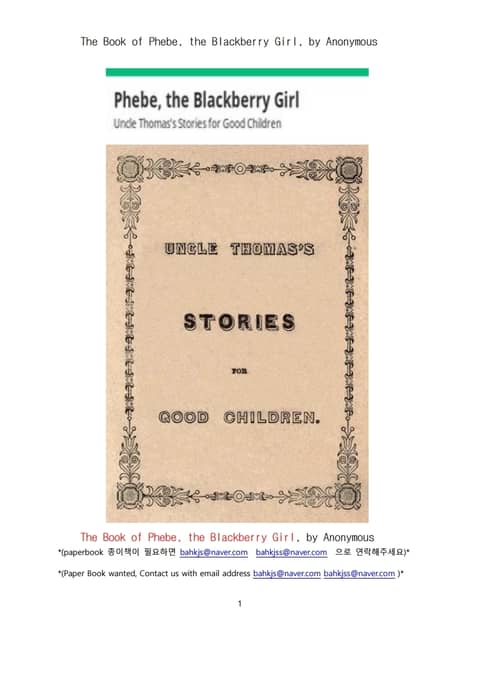 피비, 블랙베리소녀 이야기그림책 (The Book of Phebe, the Blackberry Girl, by Anonymous)