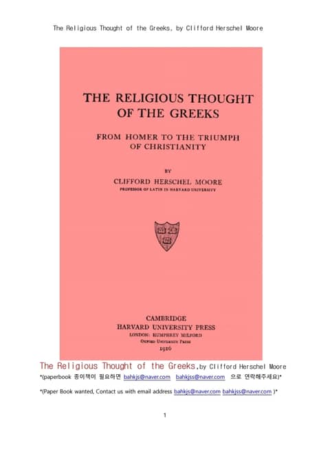 고대 그리스시대의 종교적 사고 (The Religious Thought of the Greeks, by Clifford Herschel Moore)
