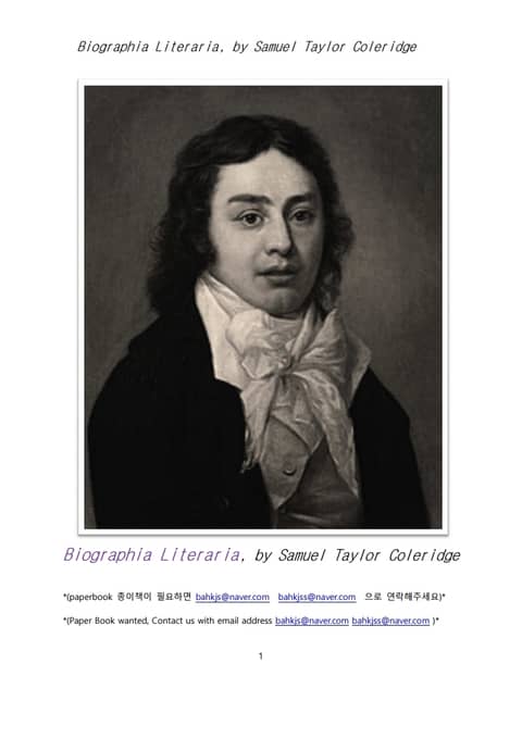 콜리지의 전기문학평전 (Biographia Literaria, by Samuel Taylor Coleridge)