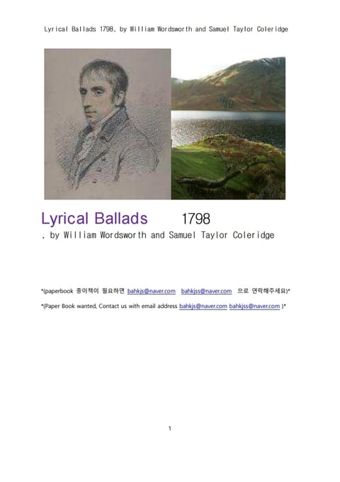 서정가요집 抒情歌謠集 1798년도 (Lyrical Ballads 1798, by William Wordsworth and Samuel Taylor Coleridge)