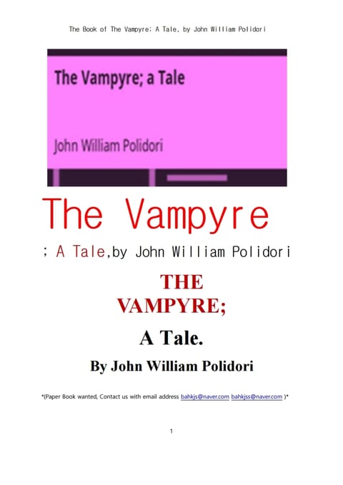 뱀파이어 흡혈귀 (The Book of The Vampyre; A Tale, by John William Polidori)