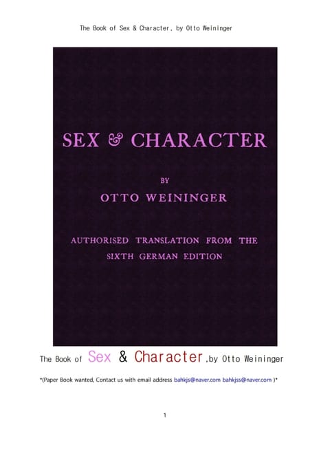 섹스 성과 성징 性徵 .The Book of Sex & Character, by Otto Weininger