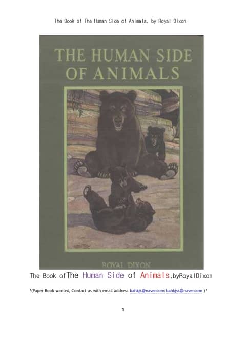 동물들의 인간적인 면.The Book of The Human Side of Animals, by Royal Dixon