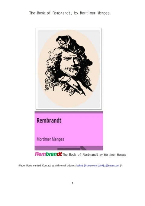 멘페스의 네덜란드화가 렘브란트.The Book of Rembrandt, by Mortimer Menpes 상세페이지