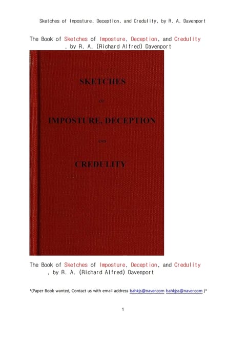 점성술에 의한 거짓과 진실의 묘사들.Sketches of Imposture, Deception, and Credulity, by R. A. Davenport
