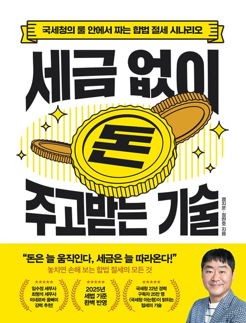 『세금 없이 돈 주고받는 기술』은 그 해답을 제시하는 실전 절세 가이드다. 증여와 차용의 경계, 증여공제 활용법, 가족법인 운영 전략, 자금조달계획서 작성법, 세무조사 대응까지, 지금까지 모호하게 여겨진 절세의 전 과정을 명확하게 풀어낸다. “얼마까지 세금을 내지 않고 줄 수 있을까?”, “가족에게 돈을 빌려줄 때 안전한 방법은 무엇일까?”, “혼수·용돈·축의금은 어디까지 허용될까?”와 같은 현실적인 질문에 명쾌한 답을 찾을 수 있다. 2025년 최신 세법을 반영해 실제 사례와 계산 기준을 담았기에, 이 책은 세금 폭탄이 두려운 직장인, 자녀의 미래를 준비하는 부모, 가족 중심의 자산 이전을 계획하는 모든 이들에게 필독서이다.