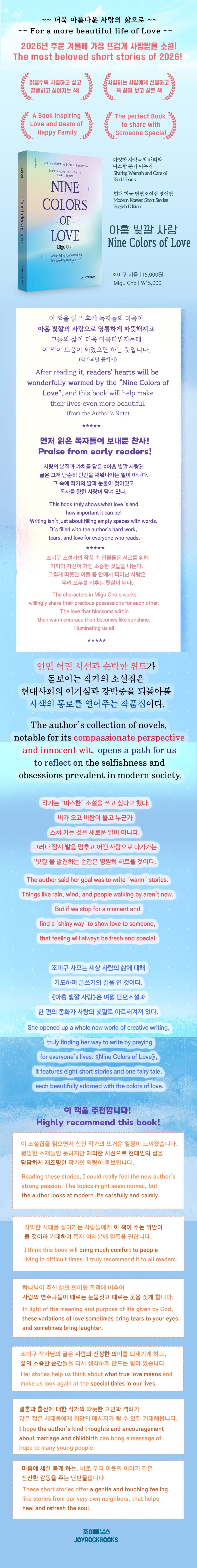 O 이 책은 조미구 작가의 《아홉 빛깔 사랑》의 영어판입니다 (2024년12월 출간했음)