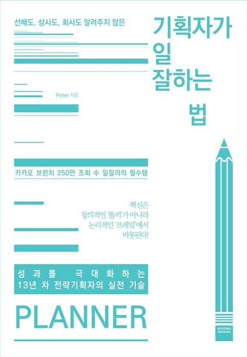 혁신과 성과, 어느 하나 놓치지 않는 ‘프로 일잘러’를 꿈꾸는 기획자를 위한 실전 가이드북. 상품개발부터 마케팅, 영업, 재무, IT, 서비스에 이르기까지 모든 기획 업무는 창작에 그치지 않는다. 아무리 좋은 아이디어가 있어도 조직의 사업 방향과 맞지 않거나 고객의 니즈와 변화를 파악하지 못하면 한낱 즐거운 상상에 불과하다. 결국 기획은 회사와 고객 모두를 설득해야 살아남는 비즈니스다.