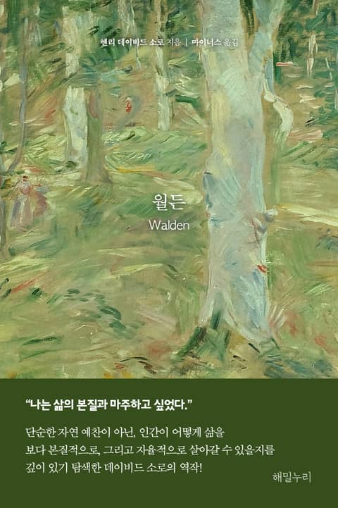 자연과 함께하는 고요한 일상, 도시에서 벗어난 삶의 실험, 노동과 독서, 고독과 관조의 순간들. 『월든』은 우리가 ‘어떻게 살 것인가’라는 질문을 진지하게 받아들여야 한다고 말한다. 소로의 목소리는 조용하지만 단호하며, 오늘날의 독자에게도 여전히 유효한 울림을 전한다.