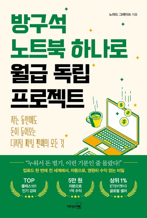 일하는 만큼만 돈을 벌 수 있다면, 우리는 평생 일하며 살아야 한다. 경제적 자립을 통해 빠른 은퇴를 꿈꾸는 파이어족의 시대, 적게 일하고 많이 버는 일은 여전히 요원할까. 『방구석 노트북 하나로 월급 독립 프로젝트』는 우연한 기회에 전 세계에서, 자다가도, 영원히 돈이 들어오는 비밀을 풀게 된 저자 노마드 그레이쓰의 작은 의문에서 시작되었다.