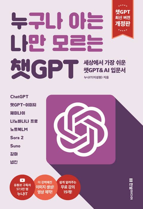성능이 크게 향상된 챗GPT 이미지 생성 기능으로 원하는 이미지를 만드는 방법과 이제 무료 사용자도 이용 가능한 Sora 2로 AI 영상을 생성하는 방법도 안내합니다. 또한 제미나이, 나노바나나 프로, Suno, 노트북LM, 감마, 냅킨 등 다양한 최신 AI 도구 활용법도 안내해 한 권으로 많은 AI 도구를 경험할 수 있습니다.