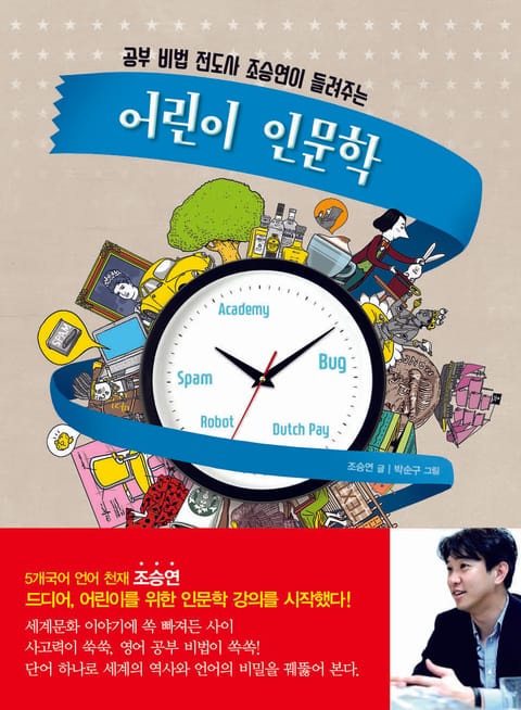 세종서적은 어린이를 위해 새로운 브랜드 세종주니어를 런칭하였다. 조승연의 『어린이 인문학』은 그 첫 책으로 정성스럽게 준비한 글과 그림을 짜임새 있게 가다듬어 세상에 내놓았다. 공부를 쉽게 하는 방법에 대해 쓴 『공부 기술』을 비롯하여 『이야기 인문학』, 『그물망 공부법』 등 17권의 책을 펴낸 공부 비법 전도사 조승연은 어린이의 눈높이에 맞추어 영어 단어의 유래와 변천의 역사를 재미있게 풀어냈다. 이 책은 영어, 프랑스 어, 이탈리아 어, 독일어, 라틴 어 등 5개 국어에 능통한 언어 천재로서 그동안 학습했던 경험을 토대로 언어 능력을 향상시킬 수 있는 비법을 제시해주고 있다. 45편의 재미있는 이야기를 통해 어원과 유래를 호기심을 가지고 알아가는 사이 어휘력 향상은 물론 인문학적인 교양도 쌓을 수 있다는 데 큰 장점이 있다. 세계 문화 이야기에 쏙 빠져든 사이 사고력이 쑥쑥, 영어 공부 비법이 쏙쏙! 단어 하나로 세계의 역사와 언어의 비밀을 꿰뚫어볼 수 있다.