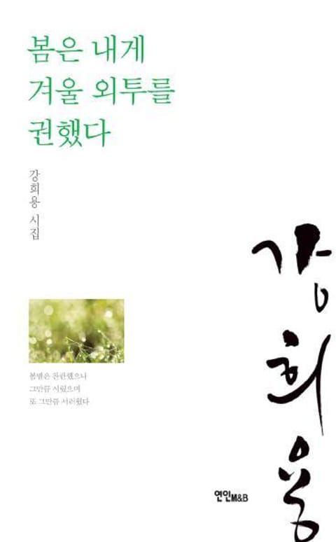 『봄은 내게 겨울 외투를 권했다』는 강희용 시인의 첫 시집이다. 감성의 도시 춘천에서 태어나 정치학, 경제학, 도시공학을 배우고 국회 정책보좌관으로 정치에 입문, 국회 출입기자의 권고로 2009년 문예교양지 『연인』을 통해 시로 등단, 작품 활동을 시작한 강희용 시인은 이 시집에서 사람에 대한 애정과 관심, 상처와 아픔, 슬픔과 괴로움에 대한 울컥거림을 절제하며 시인의 가슴 따뜻한 순수 언어의 손길을 내민다. ‘사람’과 ‘진심’이 묻어나는 시의 행간마다 사람과 살이에 대한 진지한 시선과 진솔한 목소리로 우리에게 말을 건네고 있다.