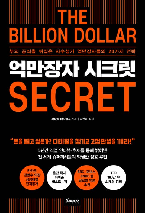 《억만장자 시크릿》은 저자가 미국, 유럽을 비롯해 한국, 태국, 중국 등 전 세계를 누비며 5년간 직접 취재한 끝에 알아낸 최고 자산가들의 20가지 성공전략을 담은 책이다. 카카오 김범수 의장을 비롯해 압도적 성공을 거둔 21인의 자수성가 억만장자를 만나 이들의 내밀한 생각과 솔직한 감정에 접근한다.