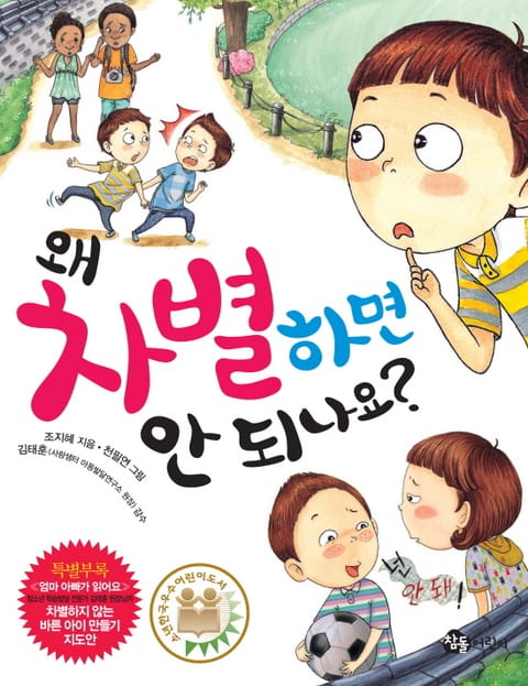 차별하지 않는 올바르고 건강한 자녀를 키우기 위해서는 부모님의 역할이 무척 중요합니다. 자녀를 다른 아이들과 비교하거나, 부모님의 입에서 차별의 의미가 담긴 말이 나오면 자녀는 자신도 모르게 차별하는 습관을 기르기 때문이지요. 이 책의 부록에는 청소년 학습발달 전문가이자 사랑샘터 아동발달연구소 김태훈 원장님의 ‘차별하지 않는 바른 아이 만들기 지도안’이 담겨 있어 부모님께도 유익합니다. 부모님의 시선은 곧 아이의 시선이 된다는 사실을 기억하고 부모님이 먼저 차별 없는 아름다운 세상을 만드는 데 앞장서 주세요!