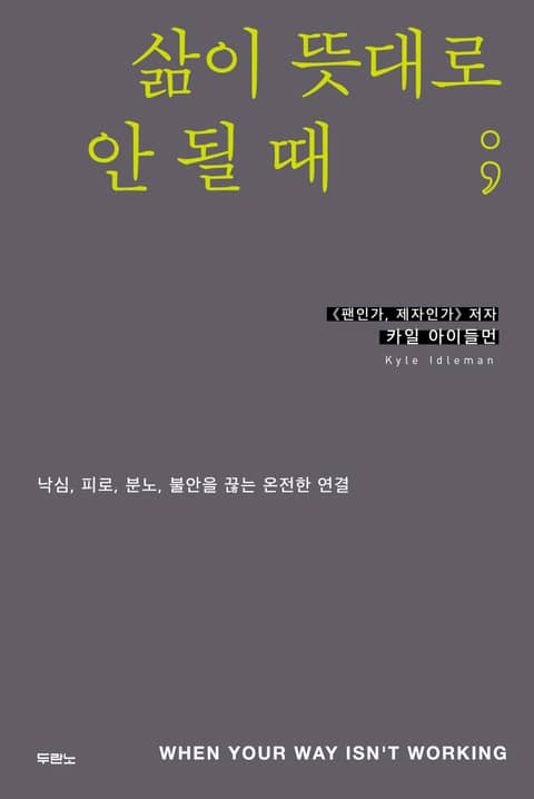 《삶이 뜻대로 안 될 때》는 성경 인물들에 비추어, 우리가 예수님께 붙어 있는 가지로서 살지 않을 때 쉬이 덮치는 ‘낙심, 피로, 분노, 불안’을 탐구했다. 인간의 방법대로 하면 온 힘을 쏟아붓고도 일의 진전이 나타나지 않아 낙심하고 만다. 자신의 무능력을 절감하고 모든 것을 그만두고 싶어진다. 뜻대로 되지 않는 일들로 극심한 스트레스에 빠진다. 내 방식대로 하면 끝내 하나님께, 다른 사람들에게, 자신에게 분노하게 마련이다. 카일 아이들먼은 이 현대인의 고질적인 문제를 풀 수 있는 단 하나의 열쇠를 오늘 우리 손에 쥐어 준다. 바로 ‘참포도나무’이신 예수님께 접붙여져 날마다 그분과 깊이 연결되어 그분의 ’가지’로 사는 것이다.