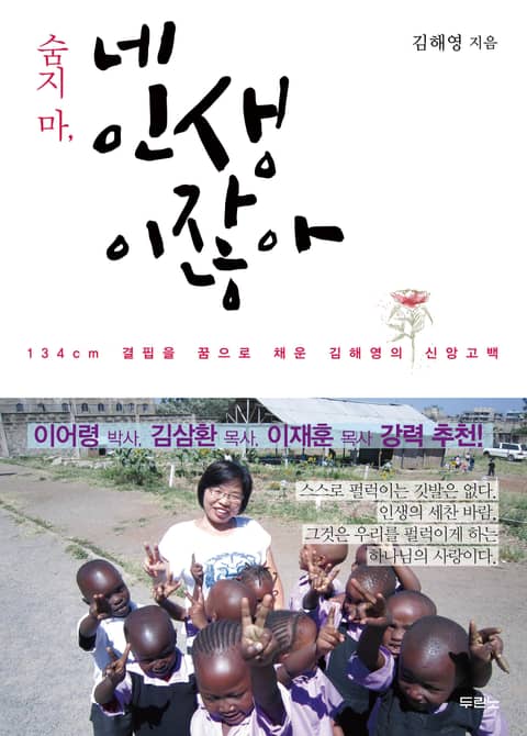 예수님을 만나는 모든 사람을 주님은 회복하시고, 탄력을 받아 일어나게 하십니다. 사마리아 여인에게도 “너는 할 수 있다. 너는 낙심하지 마라. 이 물을 먹으면 영원히 목마르지 않는다”고 말씀하셨습니다. 김해영 선교사님의 『숨지 마, 네 인생이잖아』를 통해 우리 삶에 회복 탄력성을 주시는 예수님을 만나시기를 바랍니다. 작지만 믿음의 거인으로 사역하시는 김해영 선교사님이 만난 하나님의 사랑을 더 깊이 느껴보시길 바랍니다.