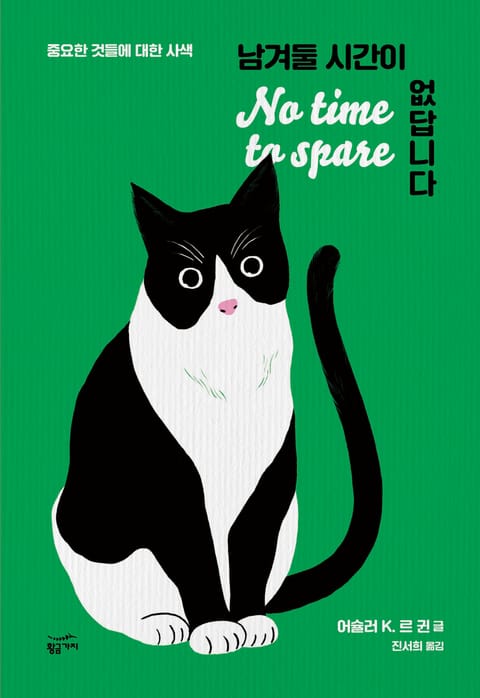 르 귄은 『날고양이들』이라는 동화를 집필했을 만큼 잘 알려진 애묘가이다. 『남겨둘 시간이 없답니다』에서는 르 귄의 마지막 반려 고양이였던 '파드'를 입양하는 과정에서부터 사사로운 일상의 에피소드를 통해, 고양이와 사람, 나아가 인류에 대한 대작가의 흥미로운 해석과 통찰을 만나게 된다.