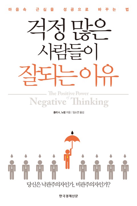 비관적이라 자신이 비판 받아야 된다고 생각할 필요 없습니다. 성격이 좋고 나쁨이 아니라 불안을 다스리는 방법/전략의 하나로 방어적 비관주의를 예시와 대화를 통해서 풍부하게 설명해 주신 저자와 역자, 편집인을 비롯한 출판 관계자 분들께 감사합니다. 남녀 주인공이 정확히 우리 부부의 전형입니다 ^^