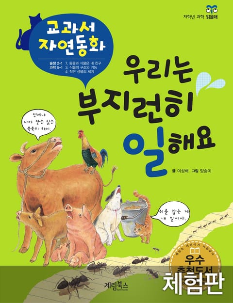 5권, <우리는 부지런히 일해요>에는 사람의 일을 도우며 사는 소, 돼지 등의 집짐승과 질서 있는 생활을 하는 개미, 겨울에 싹을 틔우는 보리와 같이 특별하게 살아가는 동식물의 이야기가 담겨 있습니다.