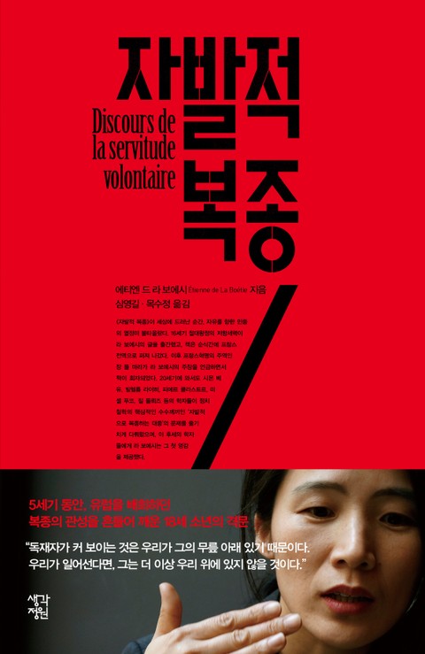 오늘날에도 충분히 우리에게 생각할 기회를 주는 책이라는 면에서 대단한 책이라는 생각이 듭니다. 또한 번역이 너무나도 훌륭했습니다. 그렇지만 라보에시의 글에 대한 해석에 영향을 많이 미치므로 역자의 인트로는 내용을 모두 읽으신 후에 읽어보시길 추천드립니다.