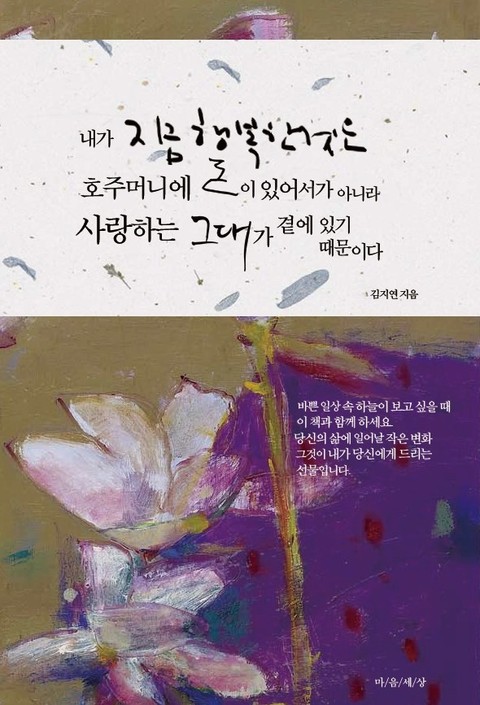 이 책에는 그동안 잊고 살았던 삶의 소소한 행복, 일상의 잔잔한 여운이 가득합니다. 가까운 이웃, 혹은 나의 이야기를 담은 작은 스토리들이 당신의 가슴을 환하게 비춰줄 것입니다. 이 책은 삶에 지쳤을 때, 그만두고 싶을 때, 포기하고 싶을 때, 몹시 슬퍼할 때도 당신을 응원해줄 것입니다. 지금 사랑하는 사람이 있다면, 그 사랑이 영원하도록 속삭여줄 것입니다. 지금 아무 걱정 없이 행복하다면, 이 책은 그 행복이 얼마나 소중한 지 이야기해줄 것입니다. 때로는 끝없는 경쟁 속에서 힘들어하고, 경쟁해서 패배하여 자괴감을 느끼고, 승리한 후에도 예상하는 결과를 맞지 못할 때 이 책은 당신의 마음속에 난 구멍을 메워 줄 것입니다. 이 책은 아무에게도 말할 수 없는 비밀까지도 속 시원하게 털어놓을 수 있는 당신의 친구가 되어줄 것입니다.
