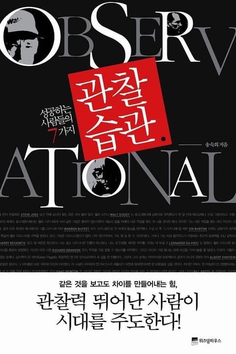 똑같은 것을 보고도 일반인들과 다르게 기회를 창출하는 것이 성공하는 사람들의 관찰하는 능력이다. 본질을 제대로 들여다보는 능력이 탁월했던 스티브잡스, 진득하게 지켜보기의 대가 워렌 버핏 등 비즈니스 천재들의 창의력과 상상력의 원천은 ‘관찰’에 있다.