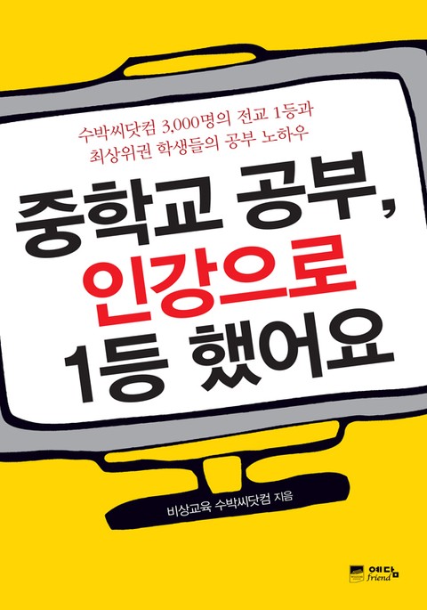 수박씨닷컴은 3,000명의 전교 1등과 최상위권을 배출한 국내 최고의 교육 사이트다. 이러한 수박씨닷컴이 20만 명의 유료 회원을 대상으로 쌓아 온 성적 향상 코칭 경험과 중위권 학생을 최상위권으로 끌어올린 5년간의 노하우가 이 책에 집대성돼 있다. 열심히 공부하는데도 성적이 오르지 않는 학생들을 비롯하여 사교육이 자신과 맞지 않는 학생, 공부에 대한 갈피를 잡지 못하는 학생, 공부법과 입시에 대한 정보를 얻지 못해 스트레스를 받는 학생들은 이 책을 통해 현실적이고도 실천 가능한 공부법을 배울 수 있다.