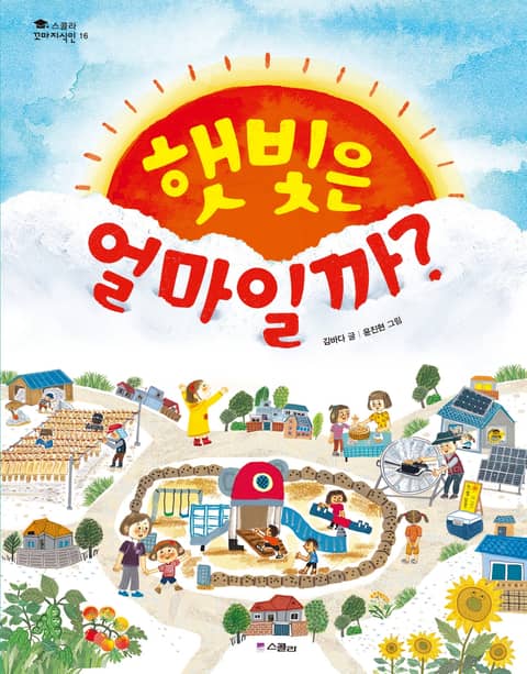〈스콜라 꼬마지식인〉은 어린이가 알아야 할 기본 지식을 그림과 함께 배우며 호기심을 채워 가는 저학년 지식 그림책 시리즈입니다. 초등학교 저학년 교과서에 나오는 주제들을 이 시리즈에서 다양하게 만날 수 있습니다. 이번에 출간된 《햇빛은 얼마일까?》는 ‘스콜라 꼬마지식인’ 시리즈의 열여섯 번째 권으로, 밝고 따스한 햇빛을 좋아하는 주인공 진희가 햇빛을 따라 여행하며, 햇빛의 중요성과 유용성에 대해 알려 주는 이야기입니다. 우리 생활에 더없이 소중한 햇빛을 돈으로 계산하면 과연 얼마를 줘야 살 수 있을까, 하는 아이다운 질문으로 햇빛의 가치를 한 번 더 생각해 볼 수 있습니다.