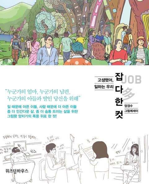 • 직업, 직장인, 직장 안 직장인의 애환을 풍자적으로 그려낸 웃픈 ‘그림 에세이’로서, 공감, 위로, 반성이 된다. 삶의 현장에서 마주하는 ‘그들’은 누군가의 ‘식구’, 마땅히 존중받아야 할 ‘사람’일 것이며, 결국 우리 ‘자신’일 텐데, 우리는 아무렇지도 않게 ‘그것’으로 대하고 있는지도 모른다. 그렇게 우리는 우리 자신을 학대하고 있다. 참으로 학대를 주고받는 ‘참 학대의 사회’일지도 모른다. ‘사물’이 아닌 ‘사람’으로 대하는 ‘사람 사는 세상’을 기대하는 마음으로 눈과 머리로는 가볍지만, 마음과 삶으로는 묵직하게 읽어내려가 볼 수 있기를 바란다.