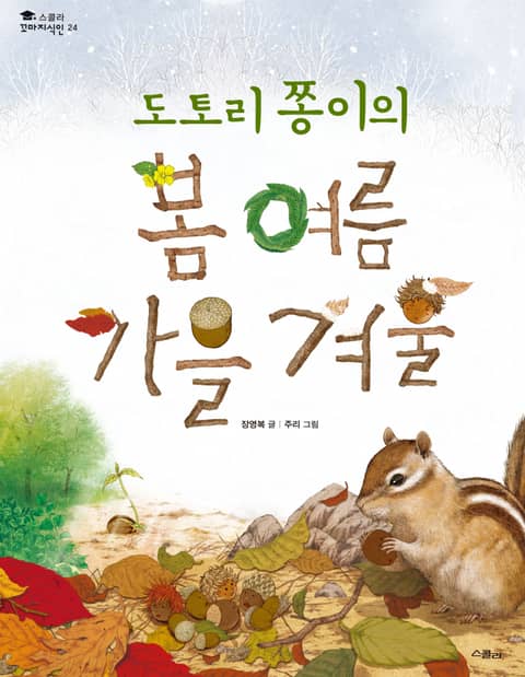 이번에 출간된 《도토리 쫑이의 봄 여름 가을 겨울》은 ‘스콜라 꼬마지식인’ 시리즈 24번째 권으로, 계절이 바뀔 때마다 숲에는 어떤 변화가 생기는지 알려 줍니다. 도토리 쫑이가 상수리나무로 성장하는 과정을 중심으로 전개되는 이야기 속에서 숲속에 사는 동식물들은 계절의 변화에 따라 어떻게 적응하며 살아가는지 볼 수 있습니다.