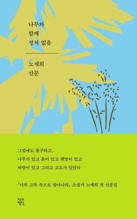 동아일보 신춘문예 등단 작가 노재희의 첫 산문집 『나무와 함께 정처 없음』이 출간되었다. 2013년 소설집 『너의 고독 속으로 달아나라』에서 불안하고 위태로운 현대인의 초상을 그리며 각자만의 고독 속으로 침잠할 것을 제안했던 소설가 노재희. 그는 이번 산문집에서 정처 없으나 자유롭고 충만한 삶의 모습을 펼쳐 보인다.