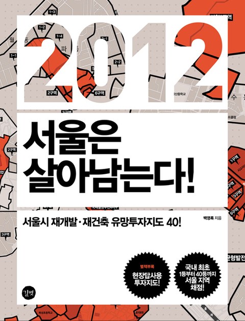 길벗출판사에서 출간한 《2012 서울은 살아남는다!》는 경기가 나빠도, 정권이 바뀌어도 안심하고 투자할 수 있는 서울시 재개발·재건축 유망투자처 40곳을 알려줍니다. 유망투자처의 조건과 그에 따른 투자 포인트도 알려주므로 불황에도 후회없이 성공투자를 할 수 있습니다.