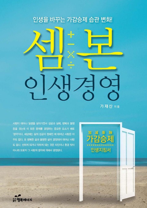 가재산 대표의 [셈본 인생경영]은 기존에 봐 왔던 자기계발서와는 사뭇 다르다. ‘성공적인 삶으로 가는 길’에 대해 열변하는 책은 많지만, 이보다 명쾌하게 해답을 제시한 책이 있을까. 초등학생이면 누구나 할 수 있는 ‘셈본’으로 삶의 여러 요소를 더하고 빼고 곱하고 나누다 보면 꿈꿔 왔던 인생이 어느덧 눈앞에 있는 것이다.