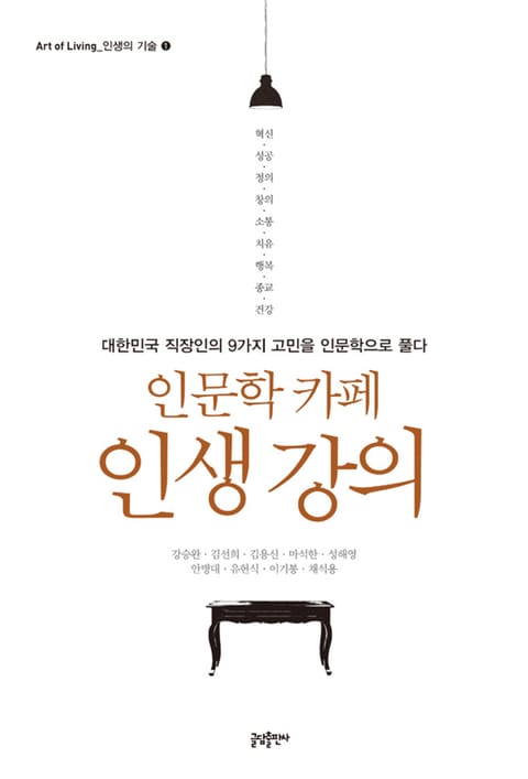 혁신, 성공, 정의, 창의, 소통, 치유, 행복, 종교, 건강 사회적 기업 〈인문학 카페〉에서 각 분야 전문가들과 함께 엄선한 대한민국 직장인의 9가지 고민을 인문학으로 풀다 문학, 철학, 역사와 같은 인문학은 우리의 삶에 어떤 의미일까? 인문학을 접하는 것과 그렇지 않은 삶은 어떤 차이가 있을까? ‘인문학을 생활 속으로’를 지향하는 사회적 기업 『인문학 카페』에서는 우리의 일상과 인문학을 접목시키기 위한 시도를 해왔다. 그동안 인문학이 지치고 힘든 일상에서 벗어나는 여유와 치유의 길을 제시해왔다면, 이제 인문학이 일상에 적극적으로 개입하여 일상의 삶을 변화시키는 데 역할을 해야 한다는 생각에서 비롯된 시도이다. 이를 위해 『인문학 카페』에서는 인문학의 대중화에 각별한 애정과 철학을 가진 분야별 학자들과 기업체 인사과 직원들, 경영컨설턴트 등과 합심해서 직장인들의 관심사와 지향점에 대해 심도 깊은 조사와 논의 과정을 거쳤다. 그 결과 우리 시대 직장인들의 주요 고민을 찾아낼 수 있었다. 그것이 바로 혁신, 성공, 정의, 창의, 소통, 치유, 행복, 종교, 건강 9개의 키워드이다. 이 책은 우리 시대 직장인들의 주요 고민에 대해 철학, 문학, 인문지리학, 통합의학 등 각 분야의 인문학자들이 인문학적인 시선으로 분석하고 풀어 쓴 독특한 책이다.