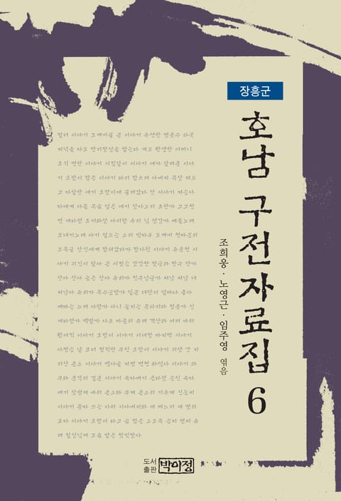 이 책은 민간에서 전해져 내려오는 구전자료를 하나로 엮어낸 자료집. 호남지역의 구전자료들을 주로 다루고 있으며, 지역별 상황을 살피고, 자료적 가치를 감안하여 포함한 자료들을 수록하였다. 제6권은 장흥군의 자료를 다루고 있으며, 크게 5장으로 구성되어 있다.