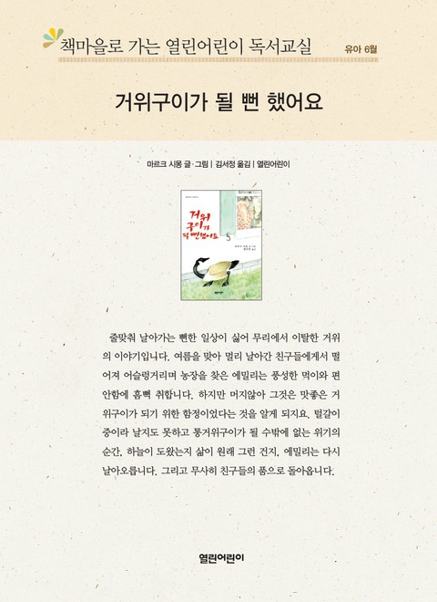 책마을로 가는 열린어린이 독서교실 유아 6월 : 거위구이가 될 뻔 했어요 상세페이지