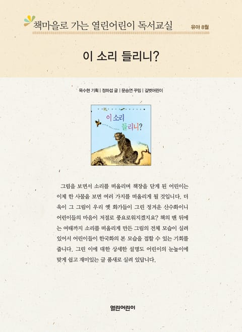 책마을로 가는 열린어린이 독서교실 유아 8월 : 이 소리 들리니? 상세페이지