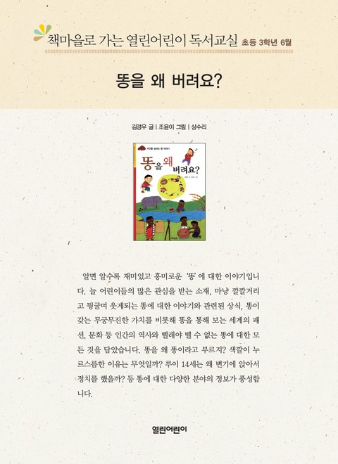 책마을로 가는 열린어린이 독서교실 초등 3학년 6월 : 똥을 왜 버려요? 상세페이지