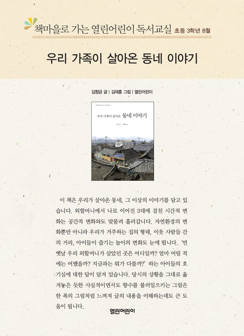 책마을로 가는 열린어린이 독서교실 초등 3학년 8월 : 우리 가족이 살아온 동네 이야기 상세페이지
