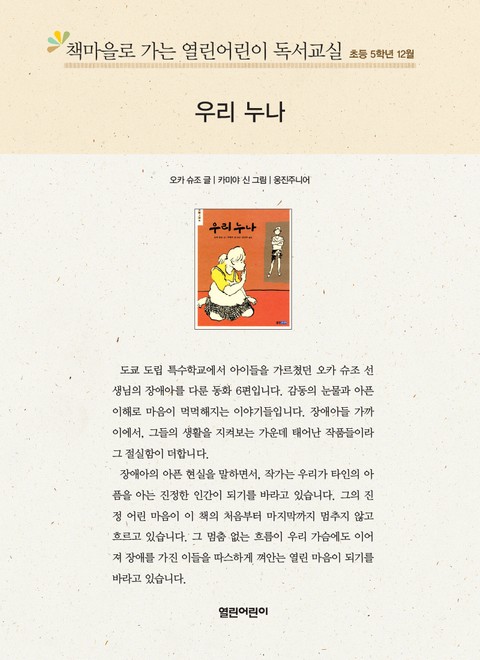 책마을로 가는 열린어린이 독서교실 초등 5학년 12월 : 우리 누나 상세페이지