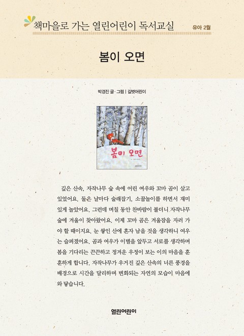책마을로 가는 열린어린이 독서교실 유아 2월 : 봄이 오면 상세페이지
