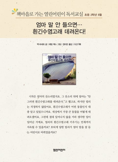 책마을로 가는 열린어린이 독서교실 초등 2학년 6월 : 엄마 말 안들으면 흰긴수염고래 데려온다! 상세페이지