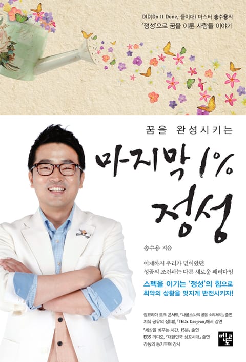 DID 마스터 송수용 대표가 ‘정성’을 다해 사람의 마음을 움직여 꿈을 이룬 사람들에 관해 정리한 결과물이다. DID는 들(D) 이(I) 대(D)의 약자로, 영어로는 ‘Do It...Done’으로 설명할 수 있다. DID 정신으로 정성을 다해 외식업계의 진주가 된 보일러 수리공, 작은 정성으로 수백 배의 수익을 올리는 경영자, 야수 같은 청년이 공주처럼 아름다운 여인을 아내로 맞이할 수 있게 해준 정성 사랑 이야기 등 직접 현장에서 만난 이들에 관한 이야기와 정성으로 최악의 상황을 멋지게 반전시킨 인물들에 관한 흥미진진한 사례를 담았다. ‘정성’은 지금까지 힘들었던 인생을 반전시킬 출발점이 된다. 그 출발은 내 꿈을 완성시키는 마지막 1%와 연결된다. 정성이 사람들의 인생을 어떻게 반전시켰는지, 사람들의 꿈을 어떻게 완성시켰는지 가슴 뛰는 여행을 시작해보자.