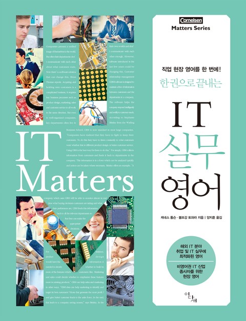 하드웨어/소프트웨어 설치 및 구성 네트워크 관리, 다양한 IT 문제 및 해결 방법부터 IT 기업의 구조, IT 기업 박람회, IT 비즈니스 관행, 구직에 이르기까지 산업 전반에 걸친 IT 업무와 밀접하게 연관된 다채로운 현장 영어를 미리미리 학습해 두어야 하는 이유도 바로 여기에 있다. 직업 현장 영어 학습에 대한 갈증을 해소하기 위해 기획된 코르넬젠 'Matters' 시리즈의 네 번째 책으로 『IT 실무 영어』를 출간하는 것도 이 때문이다.