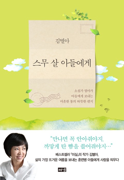 베스트셀러 『미실』의 김별아 작가가 스무 살의 뜨거운 여름에 입대한 아들에게 전하는 편지를 모아 『스무 살 아들에게』를 펴낸다. 입대한 날부터 훈련소 수료식까지 38일 동안 매일 써내려간 편지 서른여덟 편과, 백일과 첫돌 때 쓴 편지를 더해 총 마흔한 편의 진심 어린 글을 담았다.