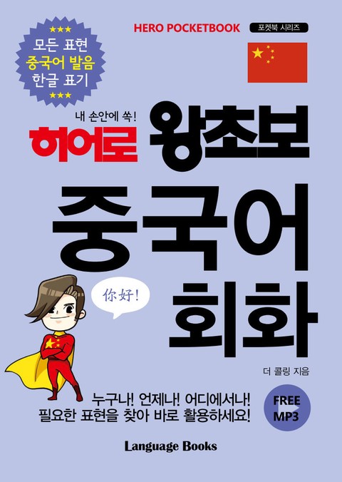 내 손안에 쏙 들어오는 『히어로 왕초보 중국어 회화』는 일상에서 쓸 수 있는 중국어 회화만을 담았다. 중국어는 세계에서 가장 많은 인구수가 사용하는 언어로, 최근 가장 핫하게 떠오르는 외국어이기도 하다. 중국의 세계적 지위가 급부상될 것으로 예견되는 만큼 많은 사람들이 중국어를 배우며, 중고등학교의 제2외국어로 가장 많이 선택한다.