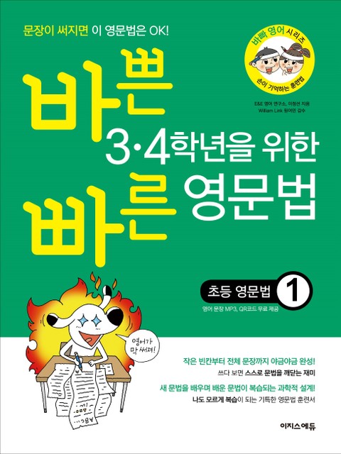 『바쁜 3·4학년을 위한 빠른 영문법』은 작은 빈칸부터 야금야금 쓰다 보면 문장이 완성되고, 쓰다 보면 문법을 스스로 깨치는 책이다. 혹시 잘 모르는 내용이 나오더라도 앞뒤 문장에서 힌트를 얻어 답을 찾을 수 있도록 구성해, 포기하지 않고 끝까지 풀게 된다. 또한 반복해야 기억나는 두뇌의 속성을 고려한 치밀한 복습 설계로, 한 번 공부한 내용을 오래오래 기억할 수 있는 기특한 영문법 훈련서이다. 이 책은 ‘바쁜 5·6학년을 위한 빠른 영문법’의 3·4학년용 시리즈이다. ‘바빠 3·4 영문법’의 기본 문장은 초등 필수 영단어를 사용하고, 문법 용어는 최소로 사용해 어렵지 않으며 문법을 처음 시작하는 초등 3, 4학년에게 적합한 도서이다.